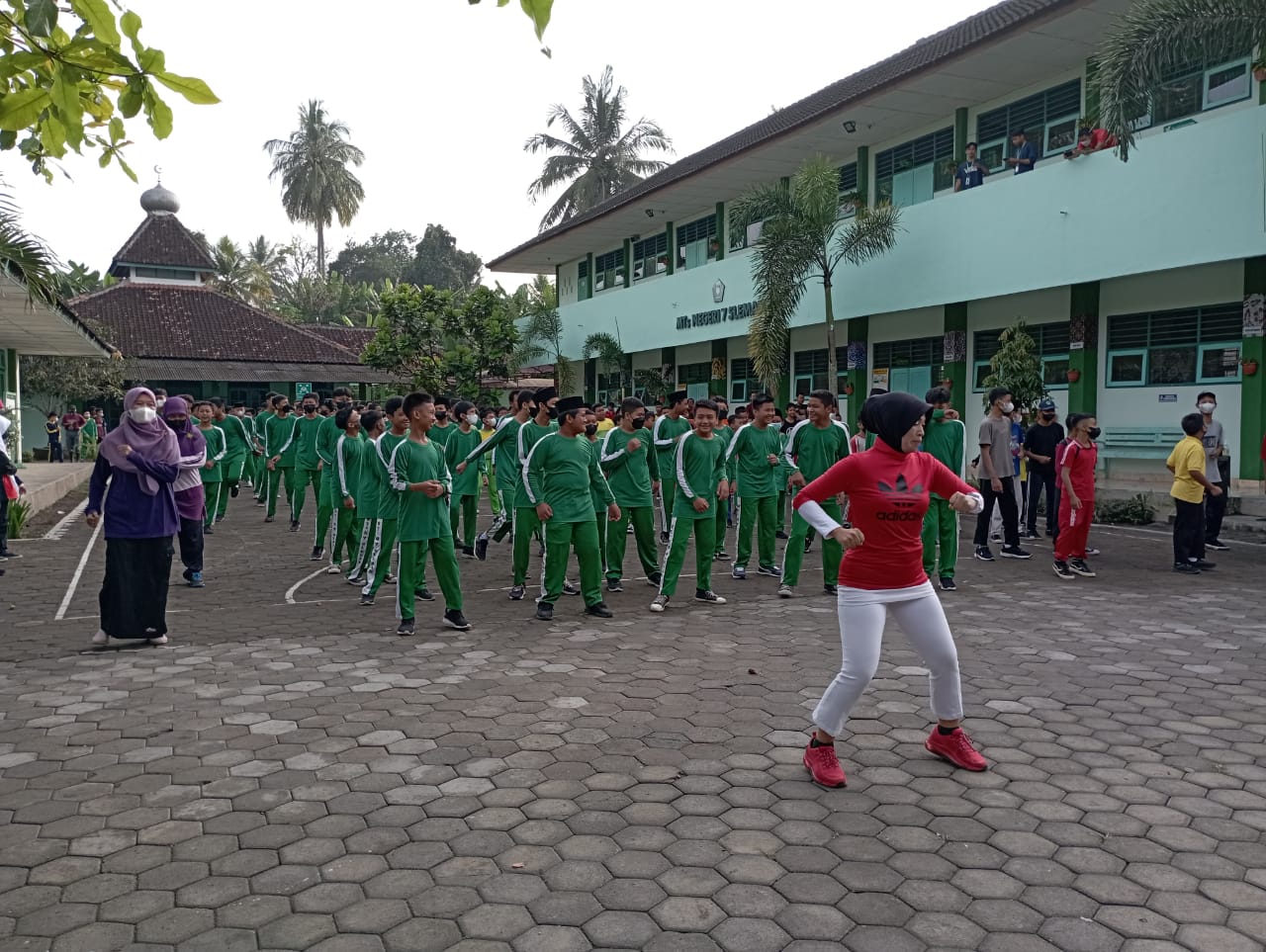 Sleman (MTsN 7 Sleman) – Tubuh yang sehat dan ideal merupakan dambaan setiap manusia. Tubuh perlu bergerak untuk memaksimalkan fungsinya dan olah raga bisa dilakukan siapa saja. Beberapa manfaatnya yaitu menjauhkan diri dari beragam penyakit, membuat tubuh lebih tegap, merangsang pertumbuhan ideal, meningkatkan daya pikir, dan meningkatkan nafsu makan. Dalam rangka mewujudkan hal tersebut dan sekaligus memperingati Hari Olahraga Nasional (Haornas) tahun 2022, Jum’at (9/9/2022) MTsN 7 Sleman menyelenggarakan senam massal di halaman madrasah. Senam yang diikuti oleh peserta didik, guru dan pegawai dipimpin oleh instruktur senam terkemuka di Kabupaten Sleman.
