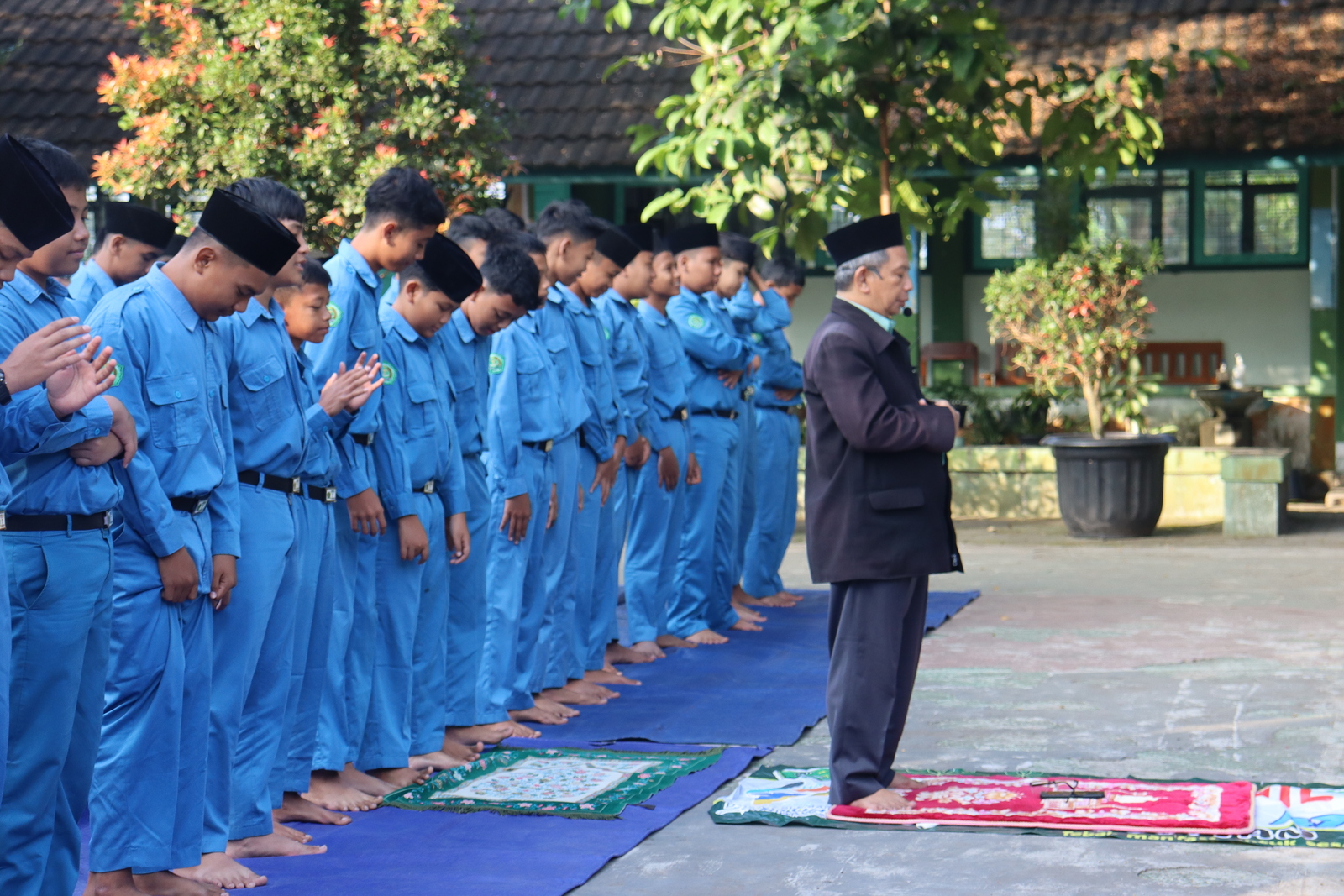 Warta Santun (MTsN 7 Sleman) - Awali Tahun Ajaran 2025/2026, MTsN 87 Sleman pada Jum’at (18/7/2025) dimulai dengan kegiatan sholat dhuha berjamaah. Kegiatan ini diadakan di Halaman Barat MTsN 7 Sleman dan dipimpin oleh H.Hadlirin, S.A.g., yang bertindak sebagai imam sholat. Seluruh murid, guru dan pegawai mengikuti kegiatan sholat dhuha ini dengan khusuk dan sungguh-sungguh.